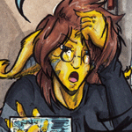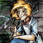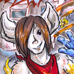 Inhuman has been online since 2003. It is drawn on paper with ink and paint, then scanned and lettered digitally. It's meant for readers aged 16+. It explores themes of trauma, identity and choice. It is 720+ pages long and fully colored. It is a work in progress.