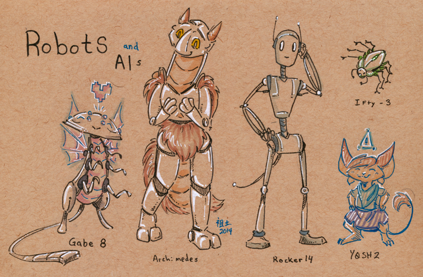 Humor for robots and advanced AIs is often based around how weird and amusing they find organic beings to be. There are few robots who actively dislike organics, and most seem to view them as weirdly adorable. Though some lesser advanced robots may enjoy being "taken care of" by organics, most seem to view living beings as odd children.