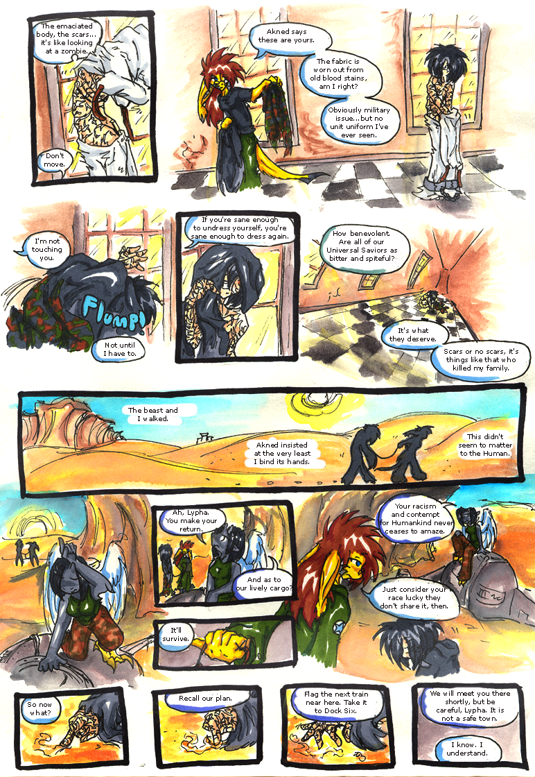 The beast and I walked. Akned insisted at the very least I bind his hands. This didn’t seem to matter to the Human. Across the desert, they reach Solla waiting at the landing site.